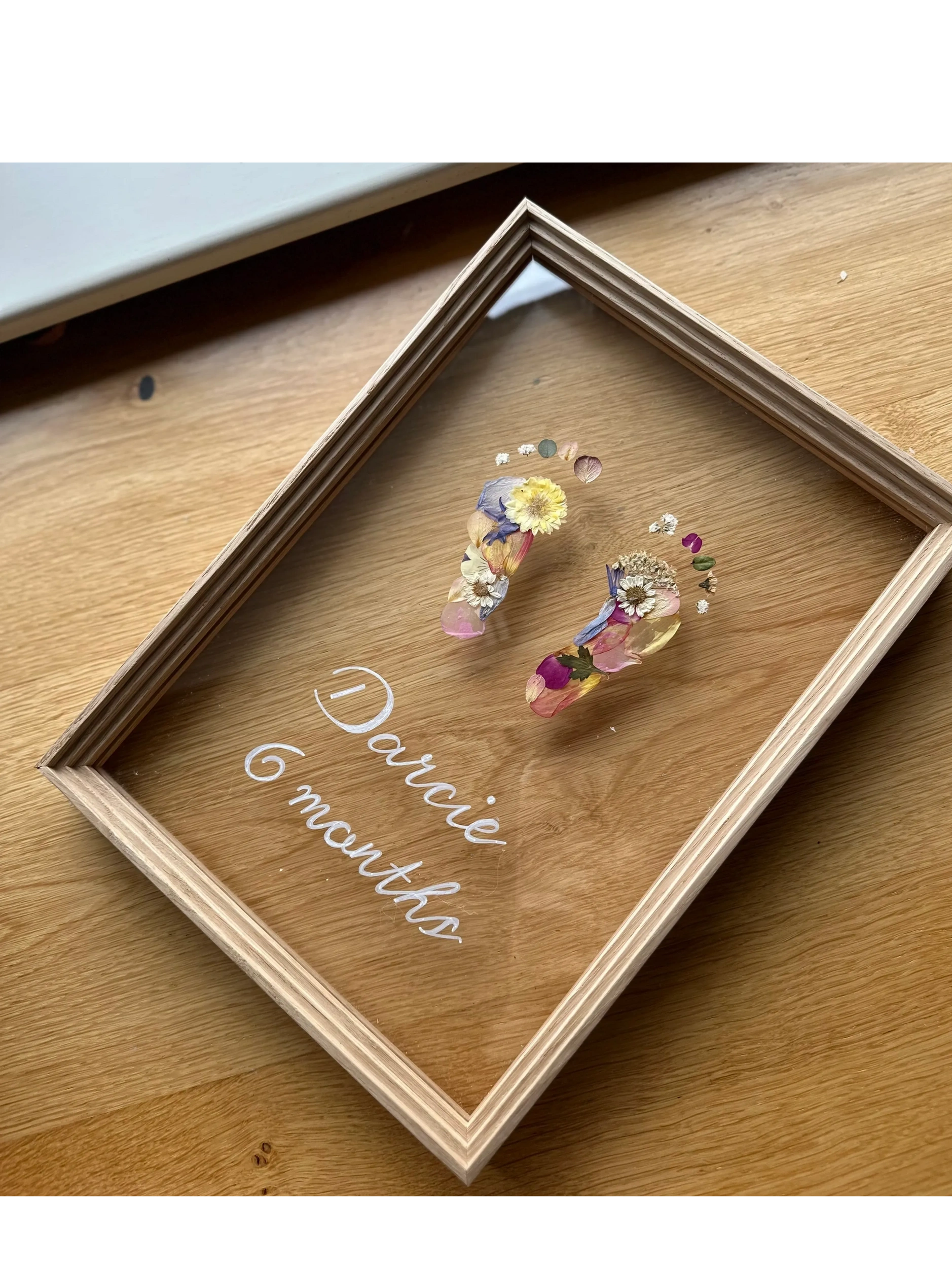 Your little one will only be tiny for just a blink of an eye. Capture the beauty of your baby's tiny toes with this exquisite keepsake, crafted from delicate flowers, leaves, and petals.